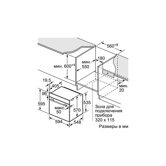 | Габариты ниши для встраивания (ВxШxГ) | 60х56-57х55 см |
