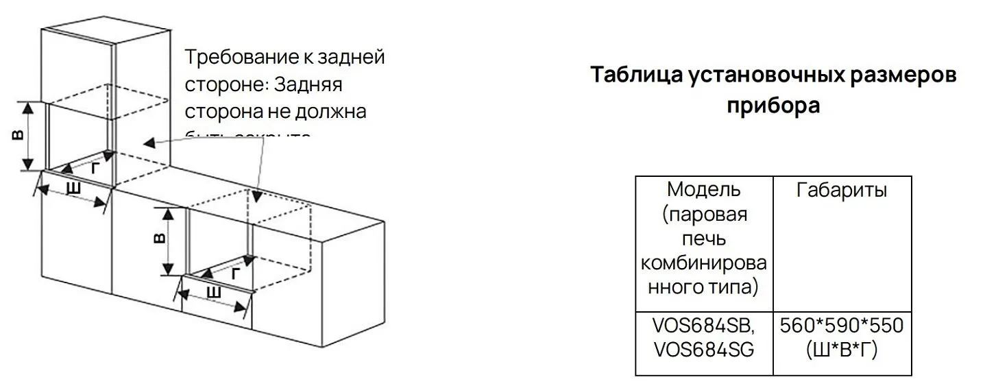 | Габариты ниши (ВхШхГ) | 590х560х550 мм |