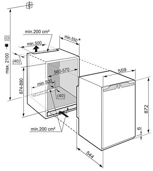 | Габариты ниши для встраивания ( В х Ш х Г ) (см) | 56-57 х 55 х 87,4-89 |