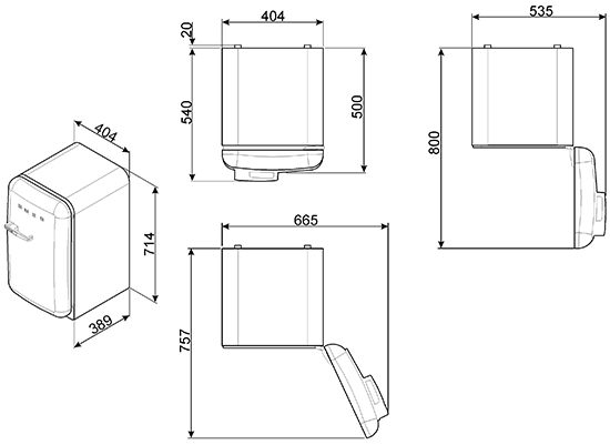 | Размеры (В х Ш х Г) | 715-730 х 404 х 520 (c ручкой 560 мм) мм |