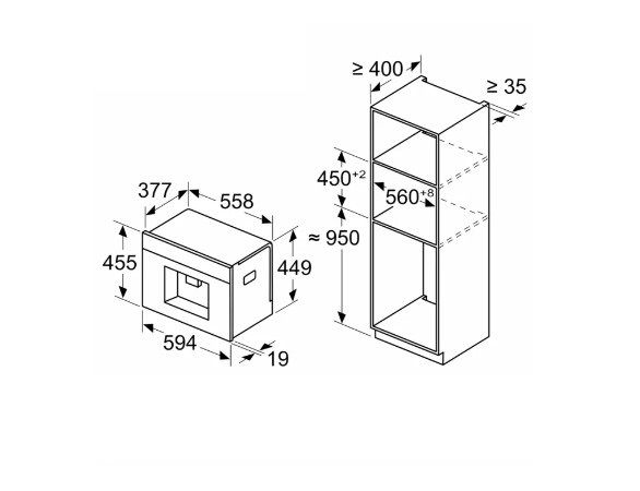 | Габариты встраивания (ВхШхГ) | 450-452х560-568х400 мм |