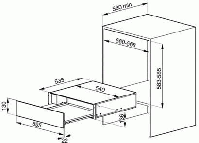 | Размеры прибора (ВхШхГ) | 136х595х557 мм |