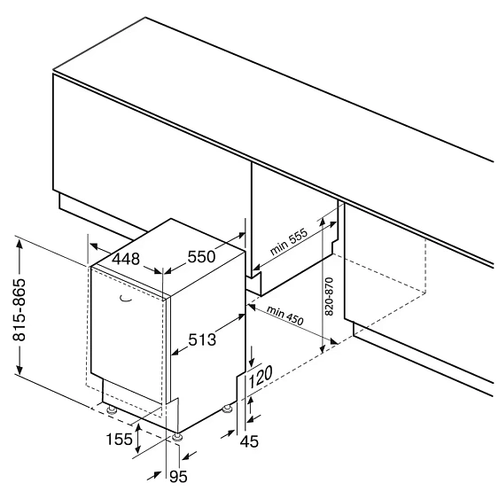 | Габариты ниши (ВхШхГ) | 820-870х450х555 мм |