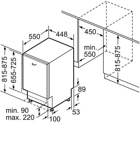 | Габариты ниши (ВхШхГ) | 815-875х450х550 мм |
